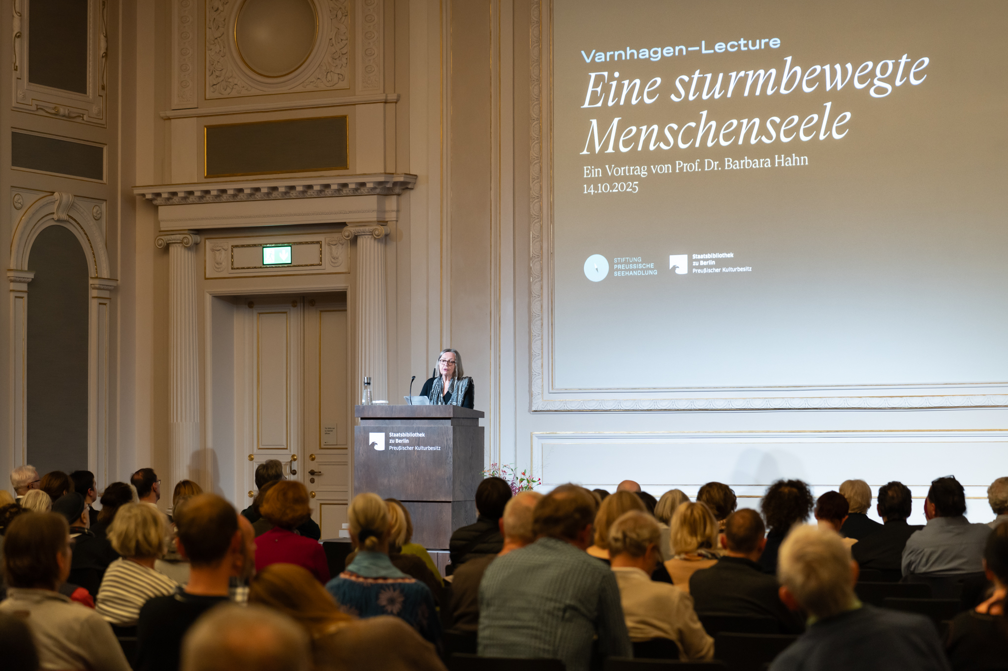 Neue Impulse setzte die Varnhagen-Lecture, eine neue Reihe, die in Kooperation mit der Staatsbibliothek zu Berlin im Herbst erstmals stattfand. Durch einen Vortrag von Prof. Dr. Barbara Hahn wurde Rahel Varnhagen nicht nur als Gastgeberin eines legendären Salons, sondern auch als Denkerin, Zeitzeugin und politische Intellektuelle gewürdigt. Die Reihe soll in Zukunft jährlich in der Staatsbibliothek stattfinden und durch Lesungen und wissenschaftliche Reflexionen vertieft werden. Die Verbindung von Briefkultur, Geschichtsbewusstsein und Gegenwartsansprache trifft auf reges Interesse und passt in besonderer Weise zu unserer Stiftungsidentität.